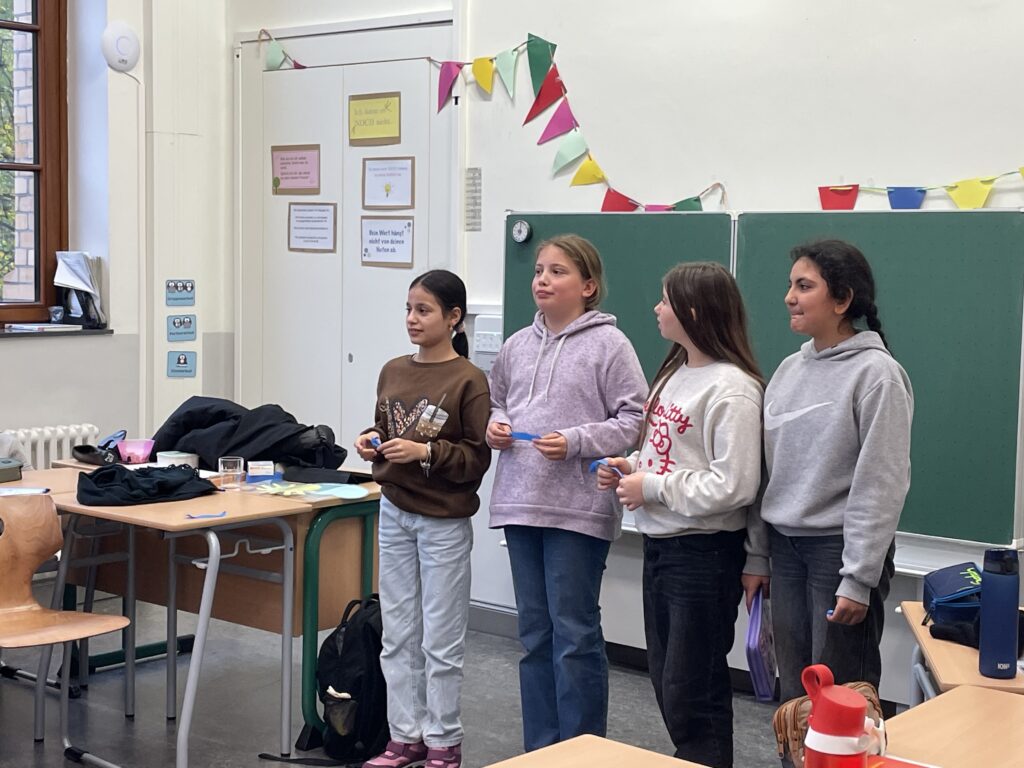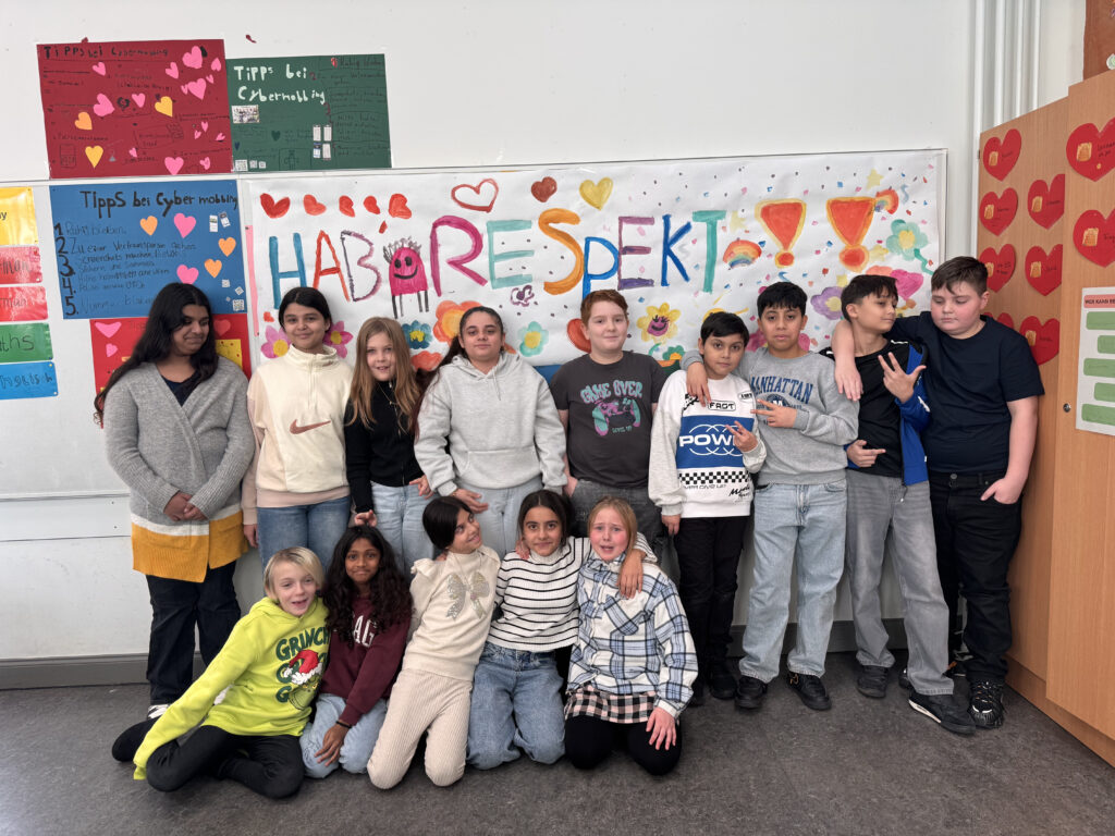 Am 21.11.2025 fand bei uns ein eintägiger Projekttag zum Thema Anti-Rassismus statt, an dem die Schülerinnen und Schüler starke Statements zum Thema erstellt und in der Schule präsentiert haben. So wurden unsere Fenster mit den Worten „Liebe ist bunt“ und unsere Wände mit: „Wir sind alle unterschiedlich und das ist gut so!“ plakatiert.