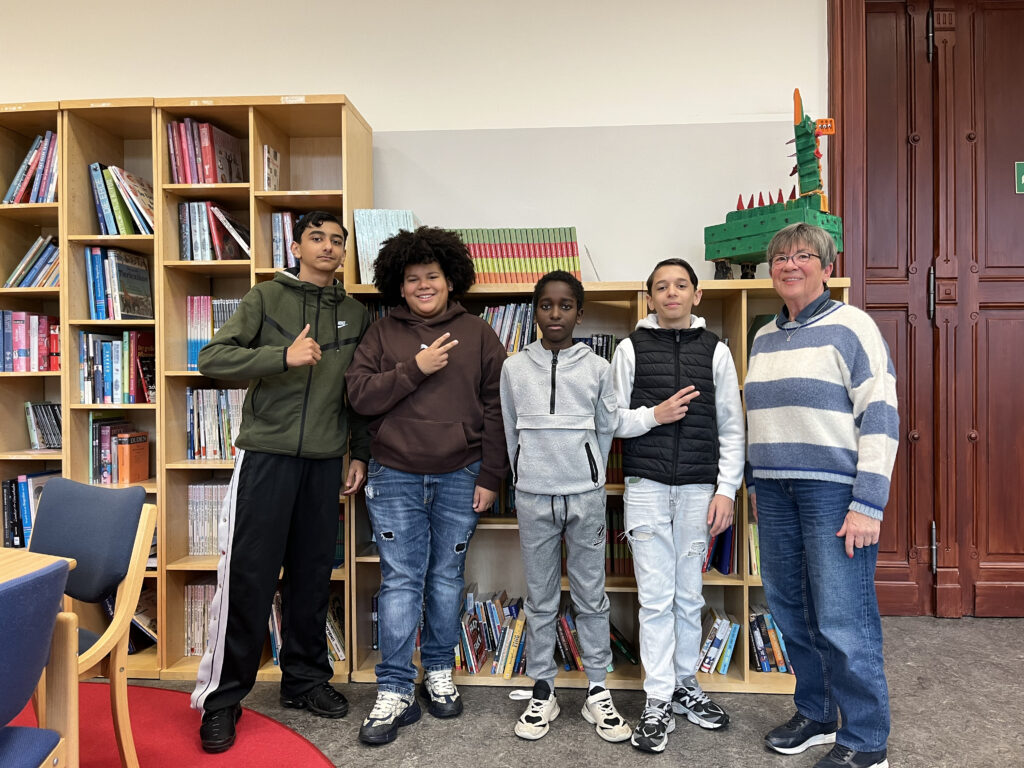 In unserer Bibliothek findet nicht nur die Leseförderung am Mittwoch statt, sondern verbringen unsere Schülerinnen und Schüler auch ihre Lesepausen. Frau Imhof sorgt dafür, dass stets die neuesten Bücher im Regal stehen und auch die Atmosphäre im Raum einladend ist. Deswegen kann man in der Bibliotheksgalerie auch die tollen Ergebnisse aus dem Kunstunterricht bestaunen. Schaut mal rein!